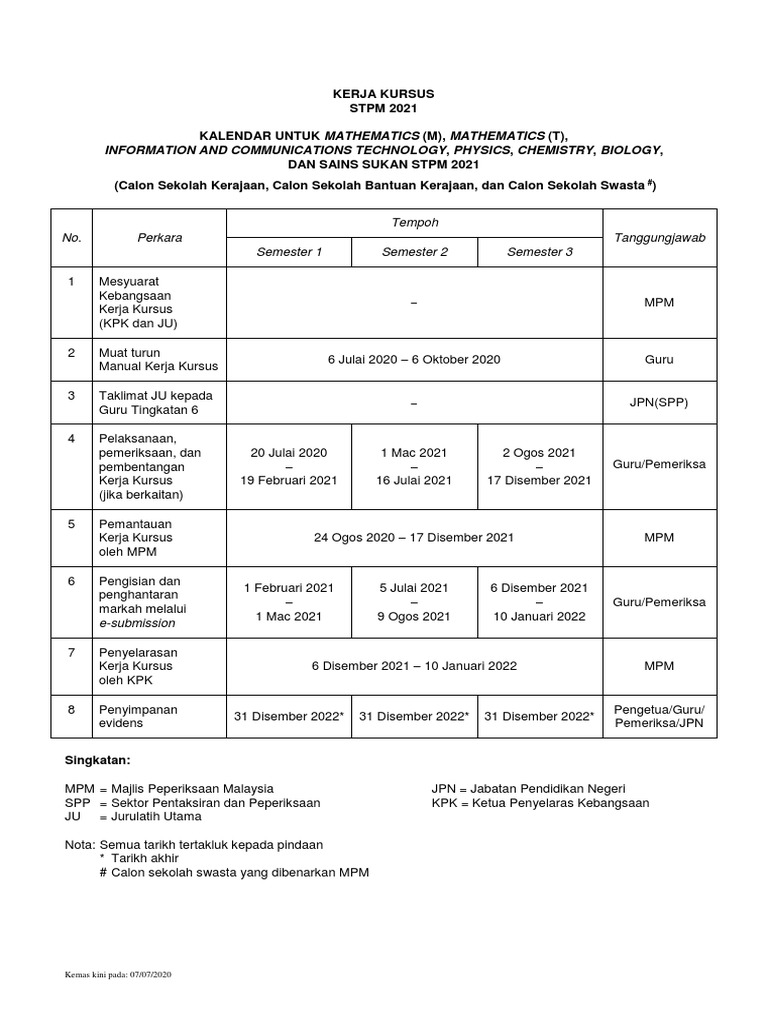 Kalendar Kerja Kursus Stpm 2022 Aliran Sains Pindaan 13 Julai 2021 Portal Rasmi Majlis Peperiksaan Malaysia Mpm